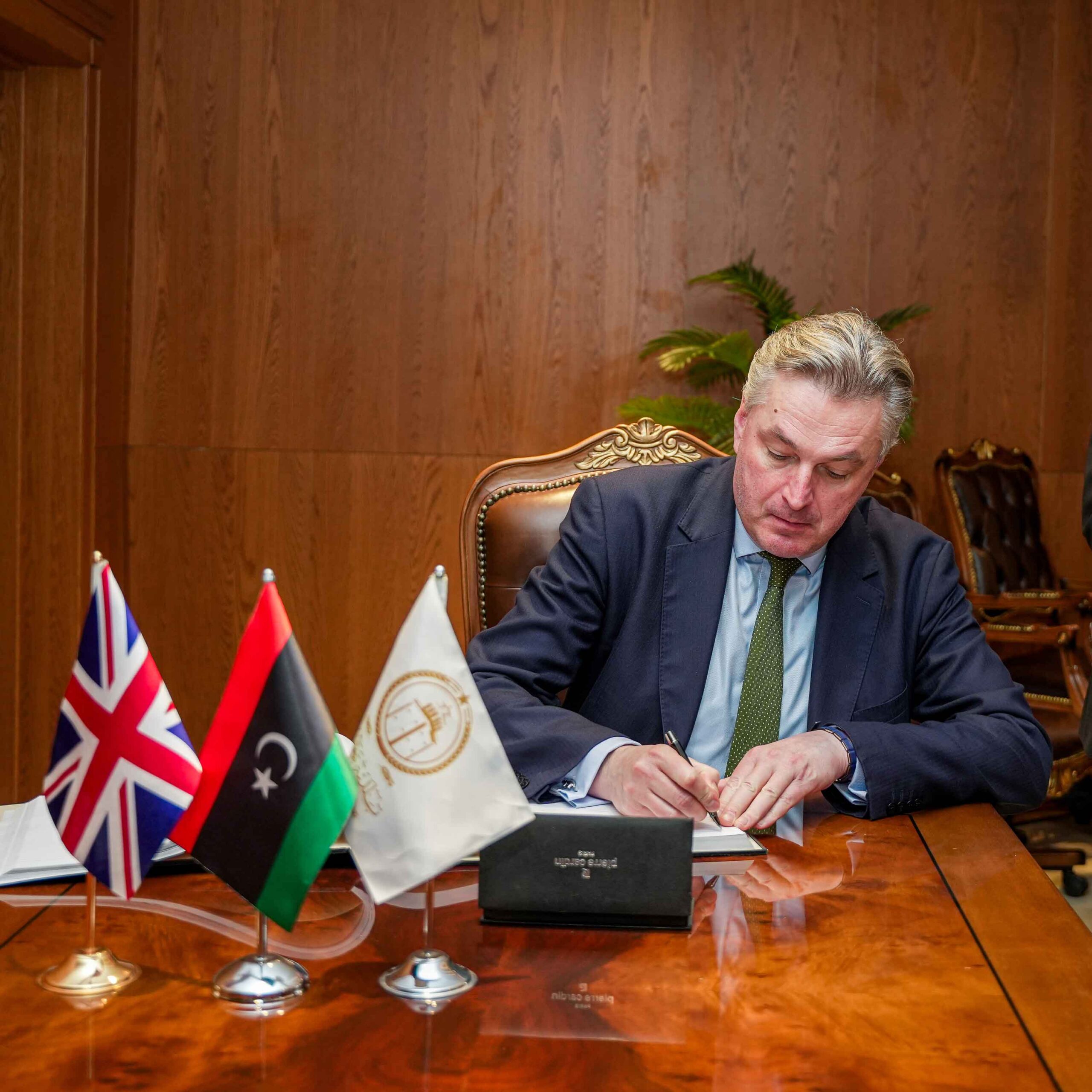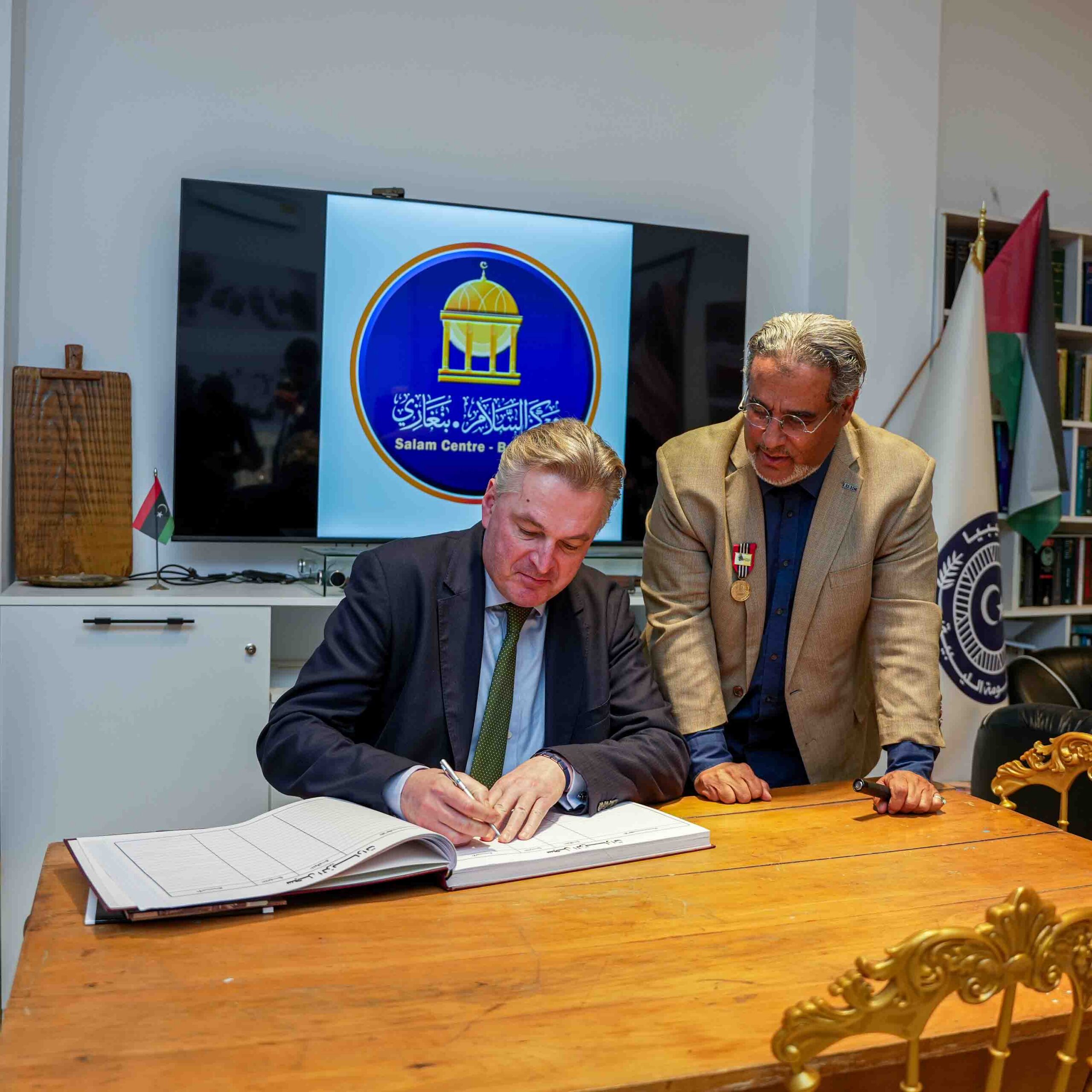The Benghazi Peace Center said it received the UK delegation on Sunday, 15 February 2026, with the center’s director-general, Faraj Najm, welcoming the visitors. The program included a visit to the Omar Al-Mukhtar mausoleum, where the delegation laid a wreath and received an overview of Al-Mukhtar’s biography and his companions. The delegation also toured the mausoleum’s cultural center, where discussions covered fascist-era detention sites, Libya’s participation in World War II, and briefings on the Libyan National Army’s war against ISIS, which the center said included Benghazi’s most intense episodes. The visitors viewed rare photographs and historical items, signed the guestbook, and received printed publications as commemorative gifts.